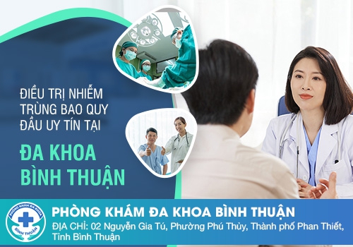Khi nói vấn đề điều trị bệnh nam khoa tại Bình Thuận, chúng ta không thể nào không kể đến Phòng Khám Đa Khoa Bình Thuận – Tọa lạc tại 02 Nguyễn Gia Tú, Khu phố 14, Thành phố Phan Thiết, Bình Thuận. Là phòng khám được xây dựng dựa trên nền tảng y khoa chất lượng và dịch vụ y tế hiện đại, bệnh nhiễm trùng bao quy đầu sẽ được điều trị triệt để bởi những phương pháp điều trị mới như: