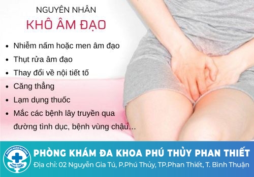 Nhiễm nấm hoặc men âm đạo: Các bệnh nhiễm trùng âm đạo, viêm nhiễm phụ khoa cũng có thể dẫn đến ngứa và khô âm đạo. Đôi khi nhiễm trùng ở cổ tử cung có thể gây ra đau khi quan hệ tình dục.
